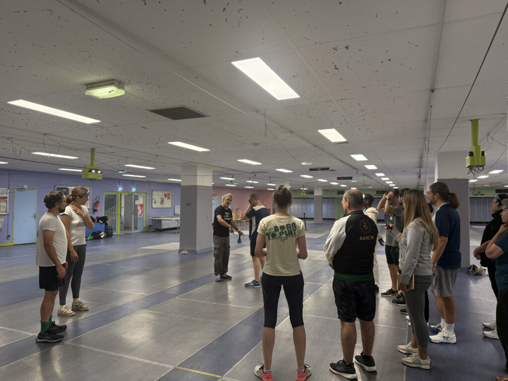 The objective was to immerse each professional in the dual nature of the workshop’s protocol. Philippe highlighted the importance for fencing masters, physiotherapists and psychotherapists to not remain confined to their usual discipline.